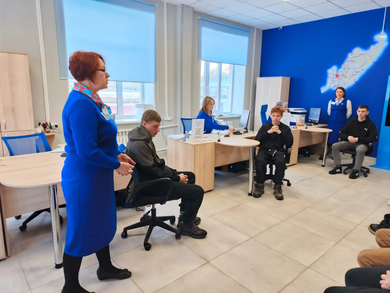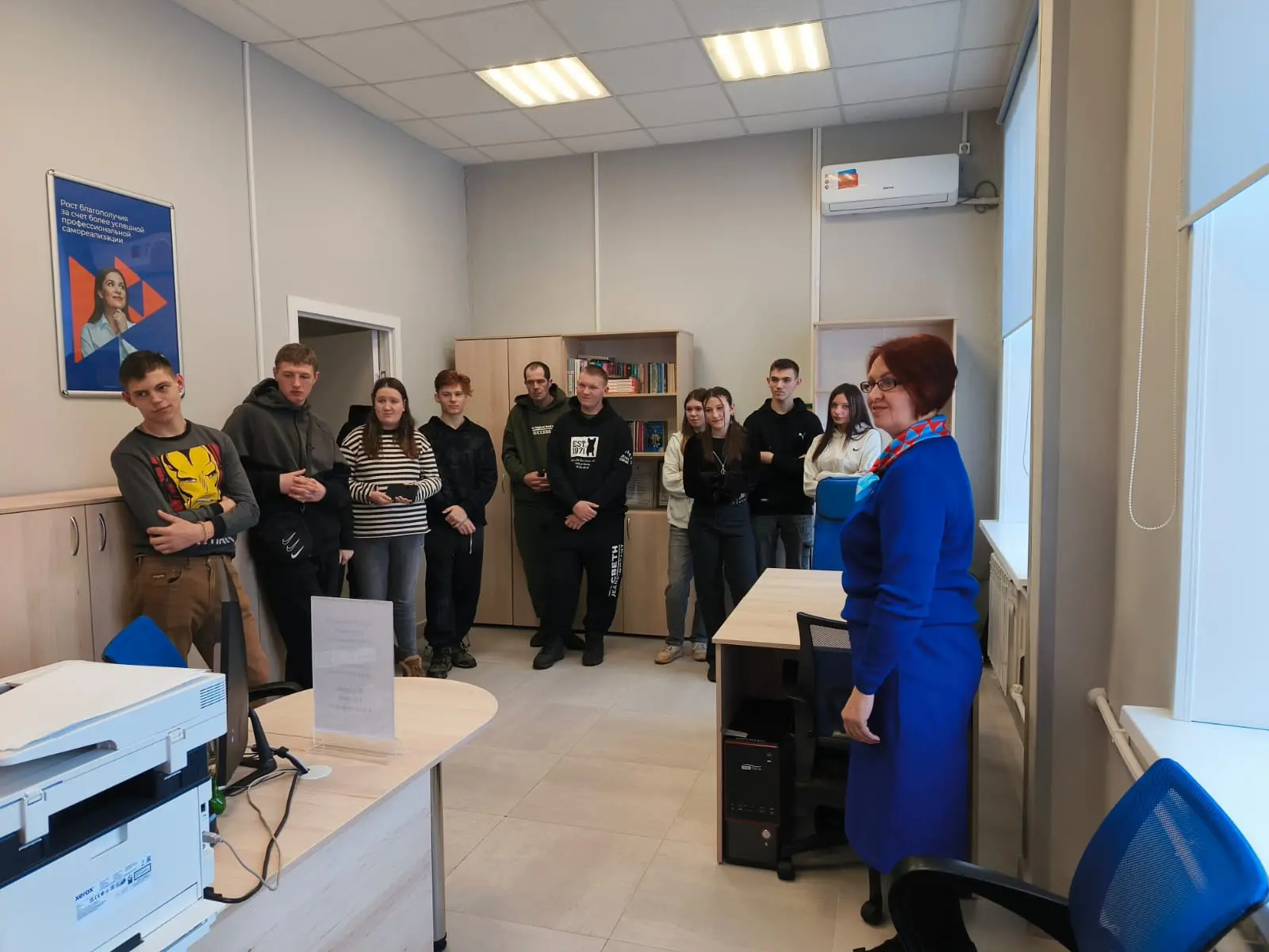 Ребят пригласили, а затем и гостеприимно приняли сотрудники Центра, которые рассказали им о современных возможностях Кадрового центра «Работа в России» в Черниговском округе.