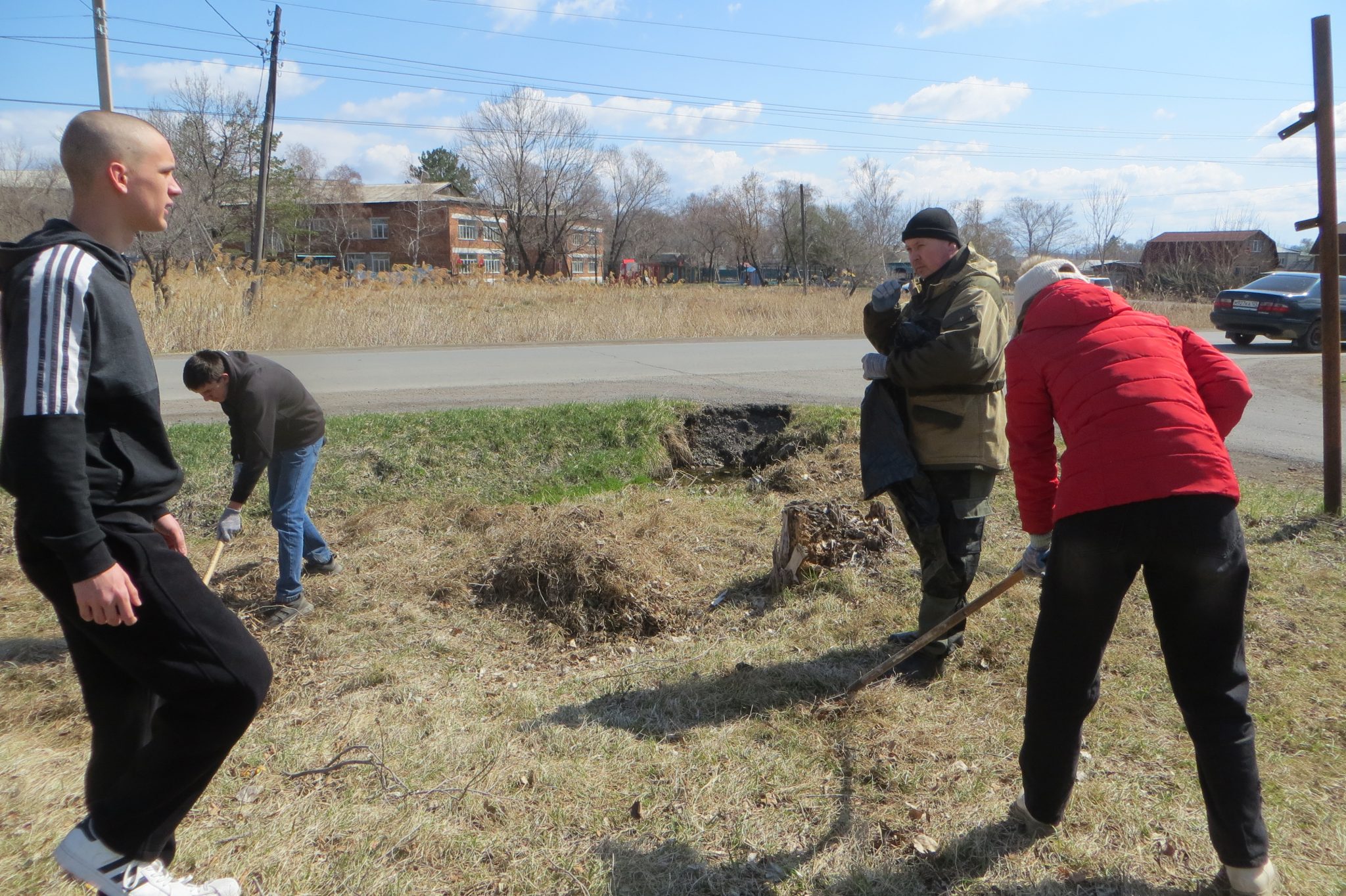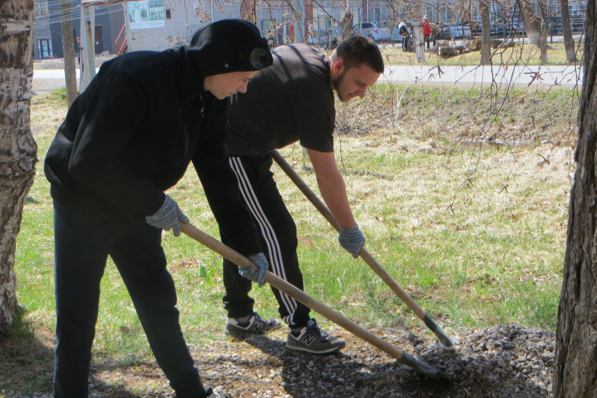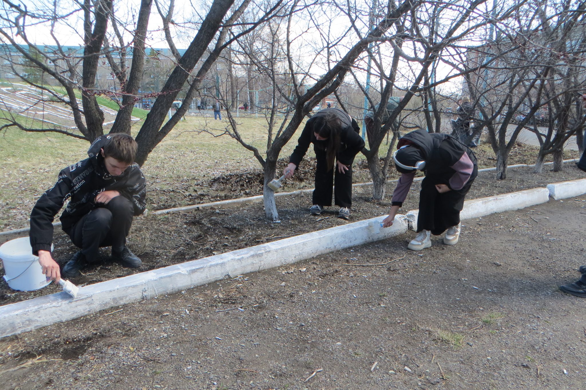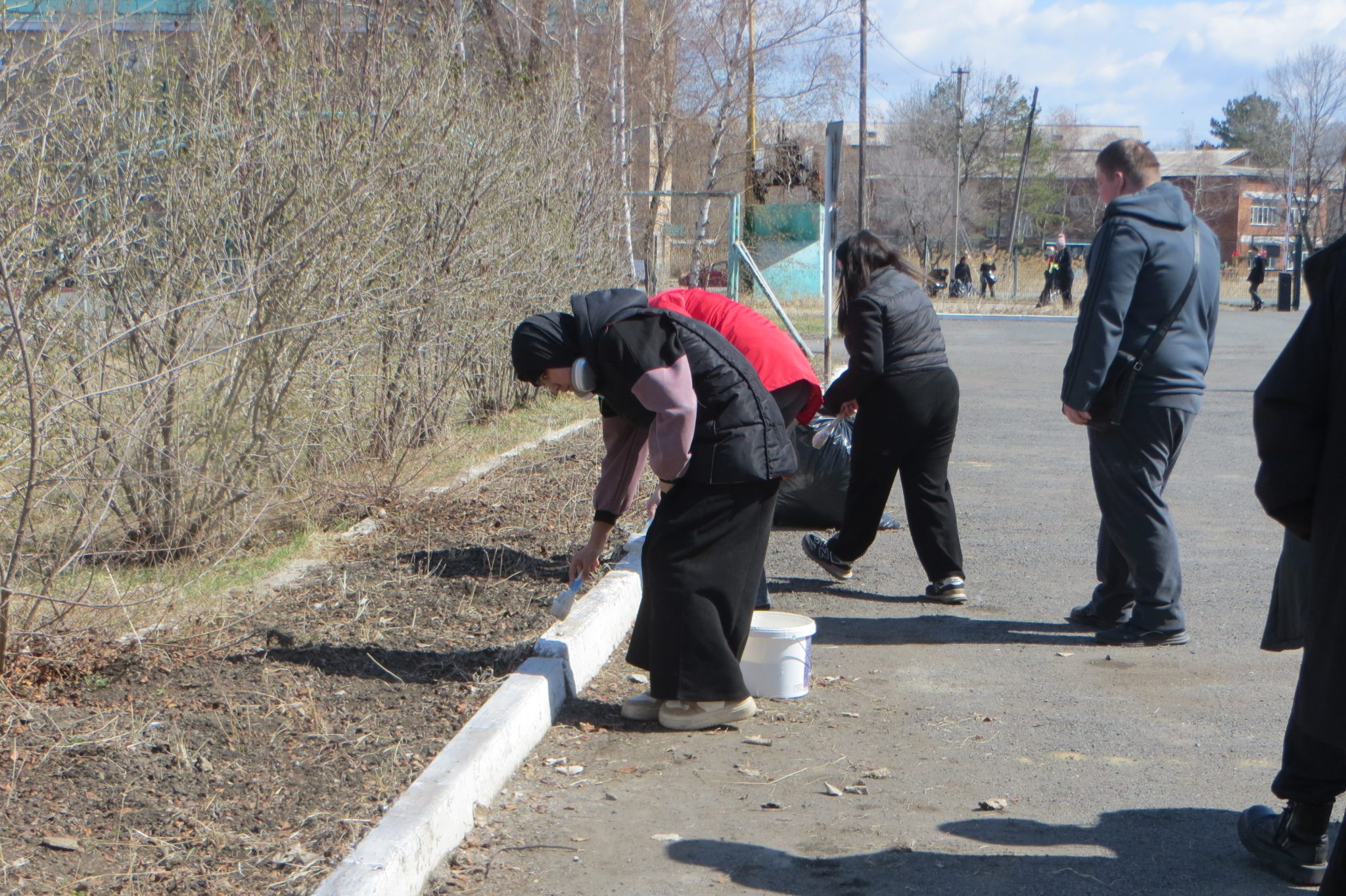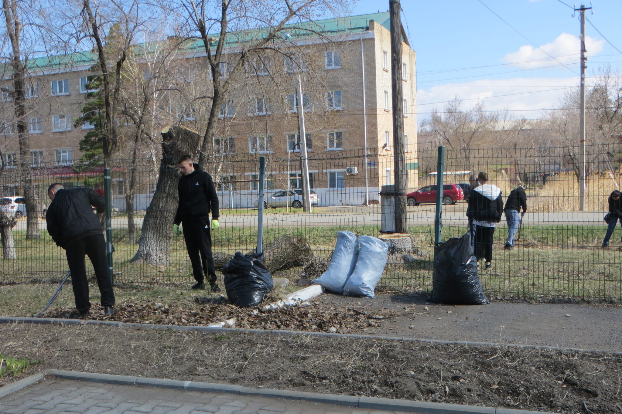 Следуя традиции Дня Земли, участники нынешнего субботника потрудились, как говорится, на славу: убрали и собрали в мусорные пакеты прошлогоднюю траву и листву, спиленные ветки, побелили деревья и бордюры, раскидали щебень у общежития, подмели территорию. Ну, а результатом такого плодотворного труда стали чистота и порядок.