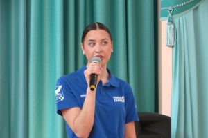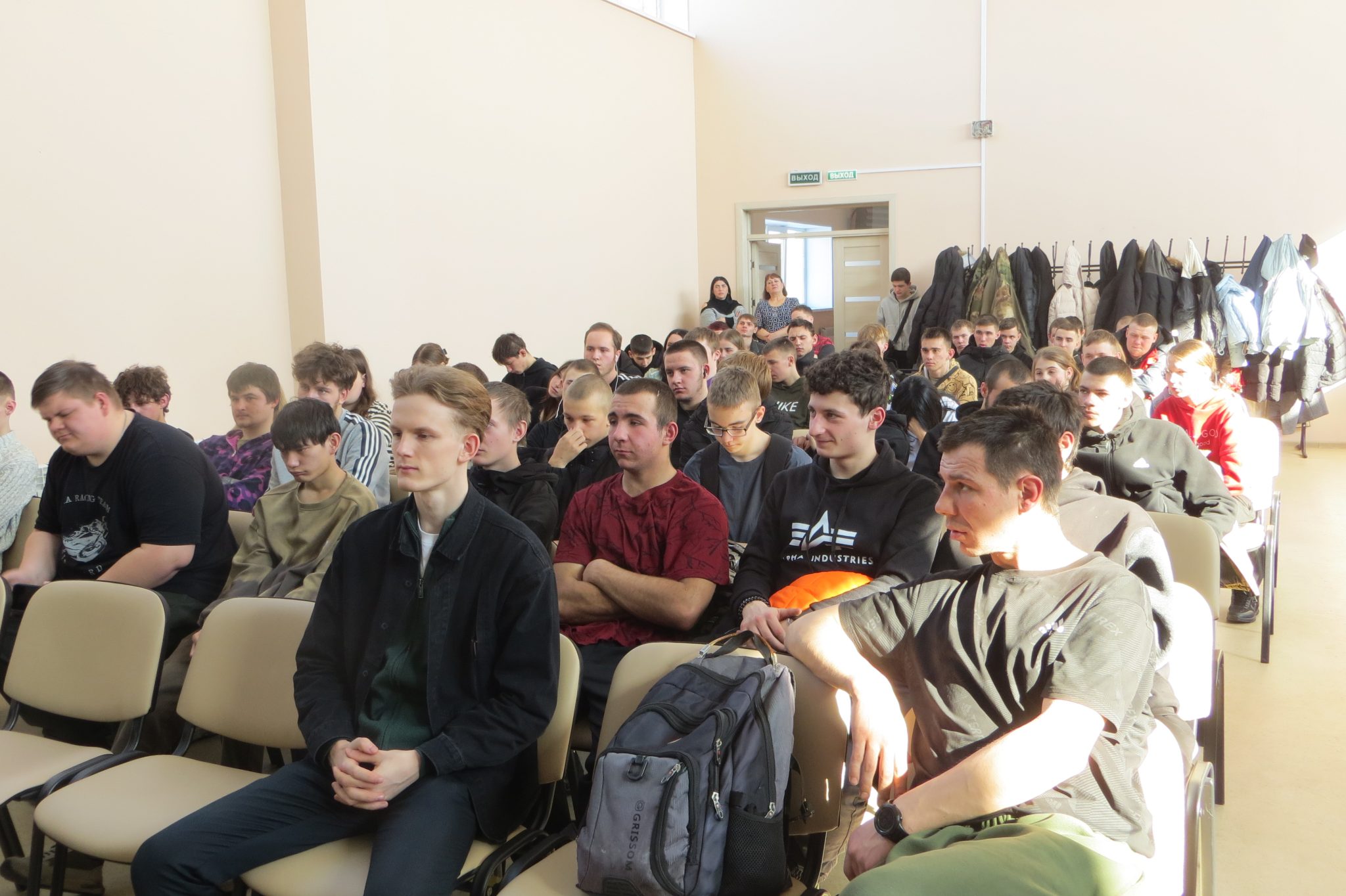 На торжественном мероприятии присутствовали студенты, преподаватели и мастера производственного обучения колледжа. А.Я. Вронская рассказала им о деятельности молодых гвардейцев, в основе которой, прежде всего, лежит оказание гуманитарной помощи бойцам специальной военной операции, их семьям и жителям освобожденных территорий.